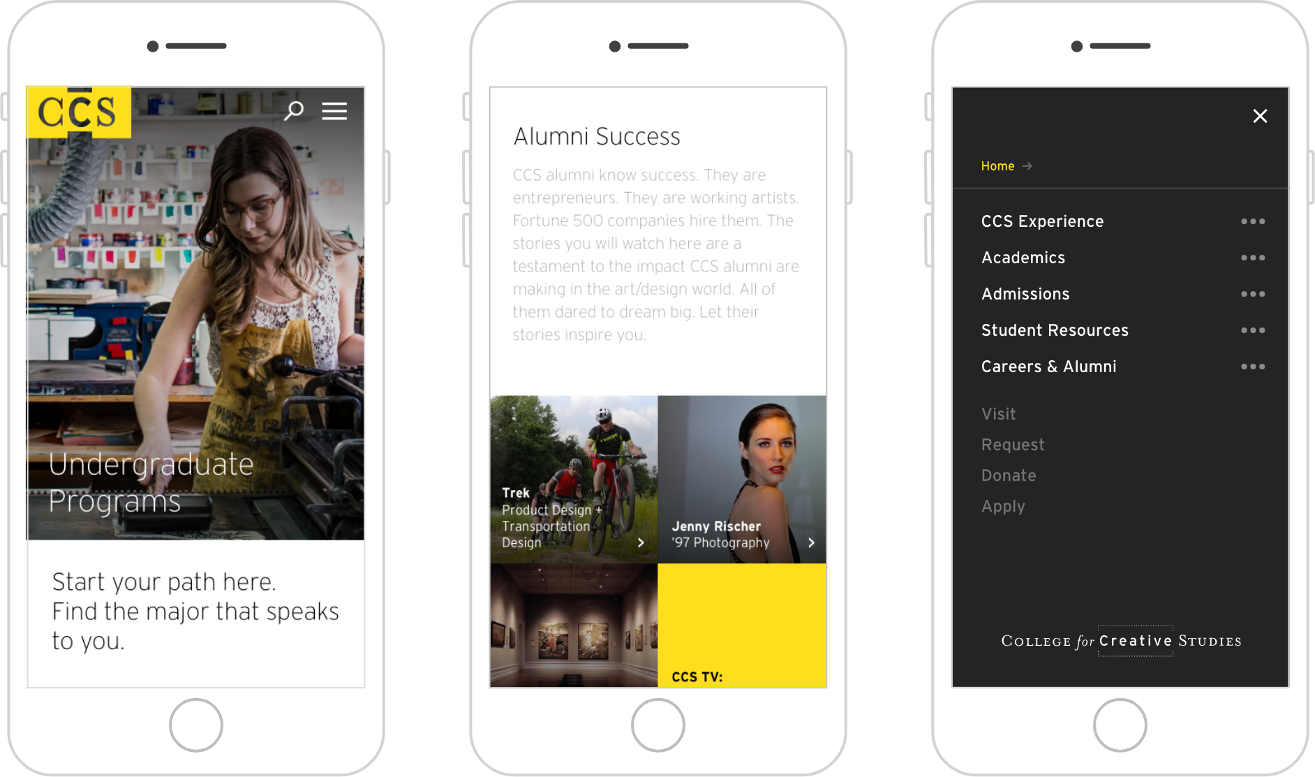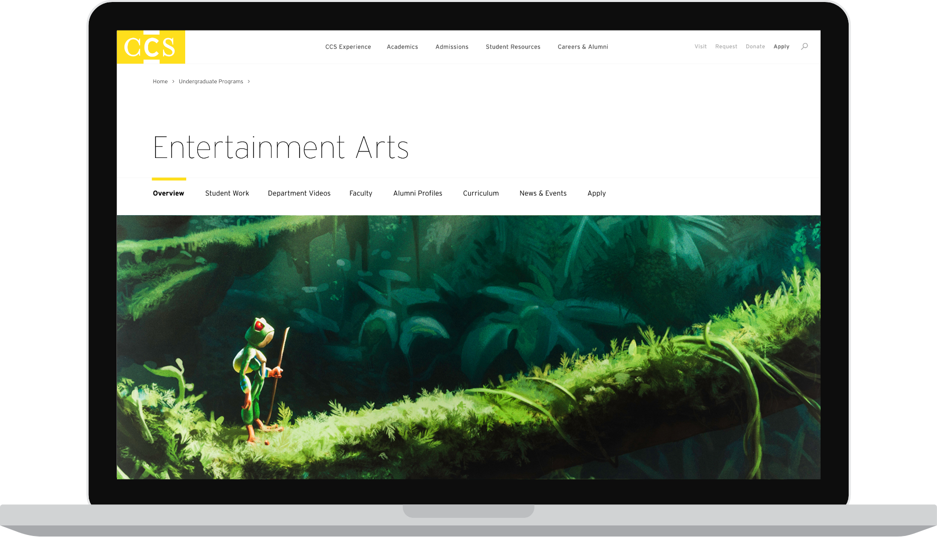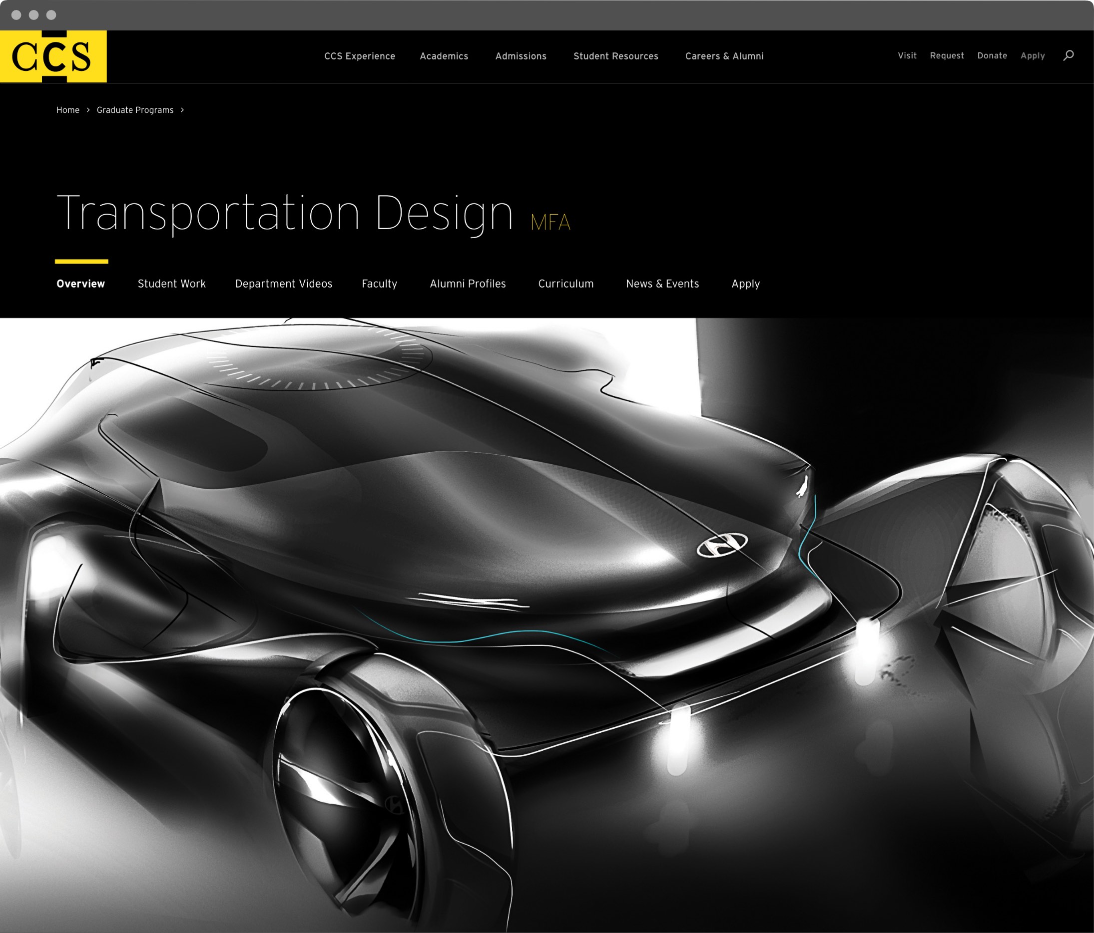 The new website provides an intuitive and friendly navigation, aiding prospective students in choosing their career paths, while enabling student work to drive the visuals. A clear and strategic design approach to connect with young prospects.